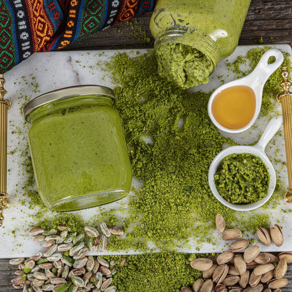 زبدة الفستق هي معجون غني مصنوع من الفستق المجفف والمحمص، ويمكن إضافة قليل من الملح أو السكر، لكنها غالبًا ما تُحضر بشكل طبيعي بدون إضافات. تعتبر زبدة الفستق من الأطعمة النباتية الغنية بالبروتينات والدهون الصحية، مما يجعلها خيارًا رائعًا للأشخاص الذين يسعون للحفاظ على نمط حياة صحي ومتوازن.